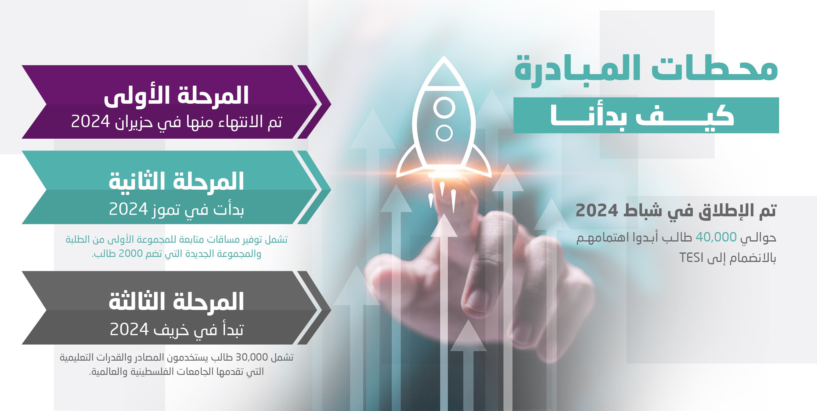 أبدى حوالي 50,000 طالب غزي رغبتهم في المشاركة في مبادرة TESIحيث يعكس هذا المستوى العالي من الاهتمام الحاجة الملحة للدعم التعليمي وإمكانات المبادرة للوصول إلى عدد كبير من الطلاب.